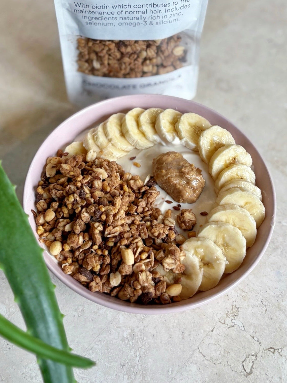 Eén portie van 50 g bevat: 5 mg (5000 µg) biotine, 3 g vezels en 6 g eiwit. Deze voedingsstoffen passen goed in een evenwichtige dagelijkse routine en het biotinegehalte ligt binnen de gebruikelijke dagelijkse supplementwaarden. Door het te combineren met yoghurt, melk of een plantaardig alternatief is het een gemakkelijk en voedzaam ontbijt waar je elke dag van kunt genieten.